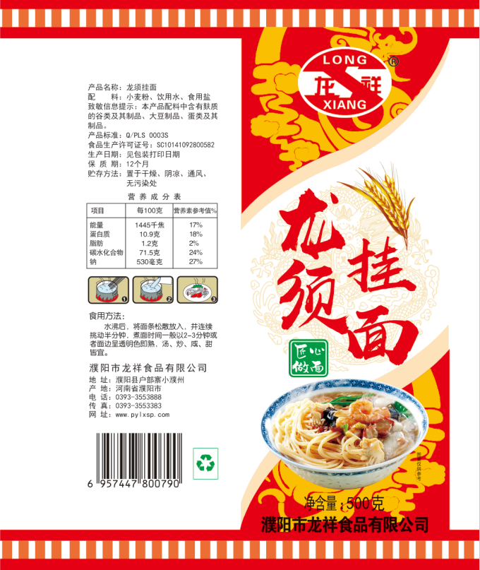 濮陽(yáng)市龍祥食品有限公司位于河南省濮陽(yáng)縣戶部寨鎮(zhèn)小濮州,始建于1994年,前期投資200萬(wàn)元,經(jīng)過(guò)幾年的努力,大力開(kāi)發(fā)市場(chǎng),由于市場(chǎng)的需求量急劇上升,出現(xiàn)供不應(yīng)求,于2004年擴(kuò)建,建成一座新型的現(xiàn)代化面粉加工企業(yè),并擁有全國(guó)先進(jìn)全自動(dòng)生產(chǎn)設(shè)備一套,產(chǎn)量由以前的100噸/天,提高到現(xiàn)在400噸/天。 2012年再次擴(kuò)大規(guī)模申請(qǐng)為濮陽(yáng)市龍祥食品有限公司,注冊(cè)資金500萬(wàn)元。2012年又投資800萬(wàn)元新建掛面生產(chǎn)線一條,日產(chǎn)掛面50噸。龍祥食品有限公司現(xiàn)有職工120余人,總工程師1人,專業(yè)技術(shù)人員10人,經(jīng)濟(jì)師1人,會(huì)計(jì)師1人,銷售人員2人,優(yōu)秀專業(yè)人員20余人?! ↓埾楣咀詣?chuàng)建以來(lái),社會(huì)效益十分可觀。公司一直以“今天的質(zhì)量,明天的市場(chǎng)”為信念,“一切為了客戶需求,竭誠(chéng)追求完美品質(zhì)”為企業(yè)宗旨,走專業(yè)化經(jīng)營(yíng)和職業(yè)化管理的路子。